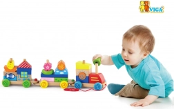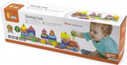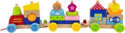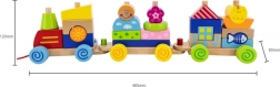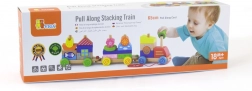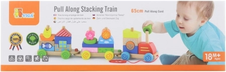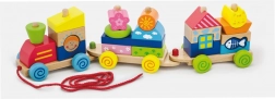 Această locomotivă de tras din lemn, de înaltă calitate, cu trei vagoane, oferă o mulțime de posibilități pentru a asambla și reconfigura formele colorate. Copiii pot exersa coordonarea mână–ochi, pot învăța culorile și formele și, în același timp, se pot distra trăgând trenulețul prin casă.