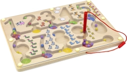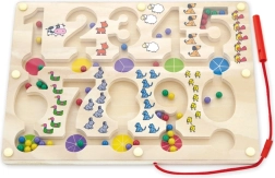 Intrați în lumea învățării și a distracției cu Labirintul Magnetic - Numere. Această placă din lemn, echipată cu cifre și mărgele viu colorate, oferă o modalitate excelentă prin care copiii își pot dezvolta abilitățile matematice și motricitatea fină.