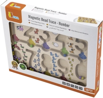 Conține un creion magnetic pentru deplasarea ușoară a mărgelelor pe piste, ceea ce ajută la dezvoltarea motricității fine.