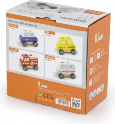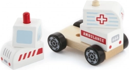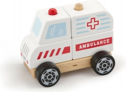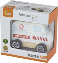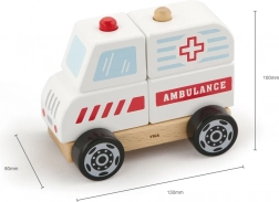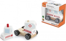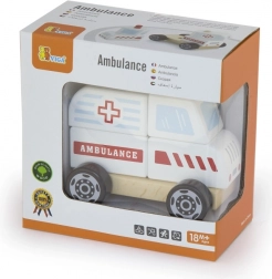 Această ambulanță din lemn combină excelent un puzzle de asamblare cu o mașinuță mobilă. Copiii pot monta piesele în forma ambulanței și apoi se pot bucura de deplasare datorită roților care se rotesc lin. Lemnul robust, vopselele de calitate și marginile rotunjite asigură joacă sigură și durabilitate îndelungată.