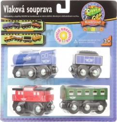 Diverse componente: Locomotivă, tender, vagon de călători și poștal.