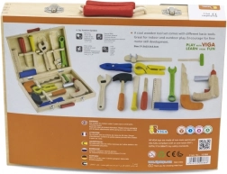 Acest set de unelte din lemn de înaltă calitate de la marca VIGA le oferă copiilor o experiență realistă de lucru cu instrumente. Piesele colorate și rezistente, precum bormașina, ciocanul, șurubelnița, cheia sau fierăstrăul, susțin imaginația și oferă o modalitate sigură de a dezvolta îndemânarea și coordonarea mână–ochi.