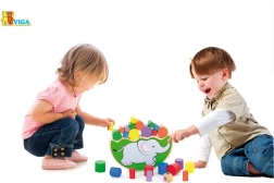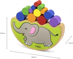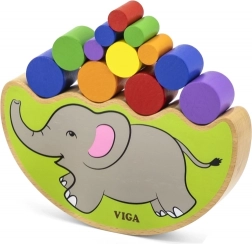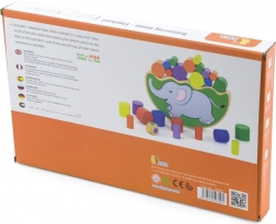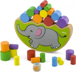 Acest joc ingenios de echilibru cu elefant aduce suspans și bucurie în fiecare rundă. Copiii, după aruncarea zarului, lucrează cu cilindri colorați și învață echilibrul, recunoașterea culorilor și coordonarea mișcărilor. Jocul este realizat din lemn șlefuit fin, cu culori variate și sigure.