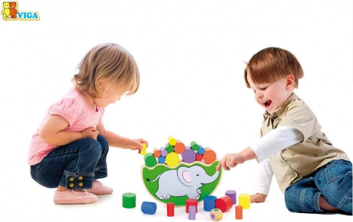 Joc distractiv din lemn pentru copii de la 3 ani, care dezvoltă motricitatea fină, răbdarea și coordonarea mână–ochi. Jucătorii aruncă un zar colorat și, în funcție de culoarea obținută, iau sau așază un cilindru pe baza în formă de elefant – fără să-l răstoarne!