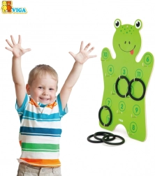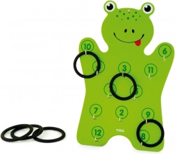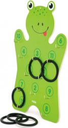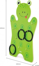 Include o placă din lemn în formă de broască și 6 inele – doar deschizi și începi să arunci.