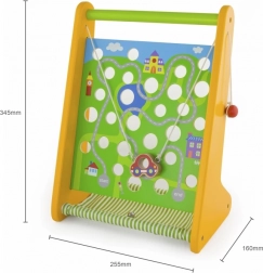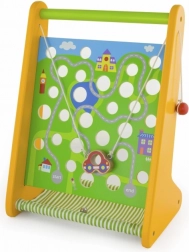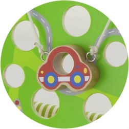 Labirintul de lemn cu mașinuță este o jucărie educativă ideală pentru copiii de la 3 ani. Folosind două sfori, copiii pot muta mașinuța pe traseul distractiv, îmbunătățindu-și abilitățile motorii.