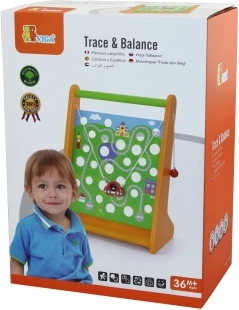 Mută mașinuța cu biluță pe drum și dezvoltă abilitatea de echilibrare pe două sfori.