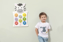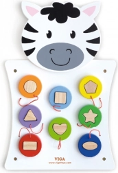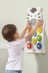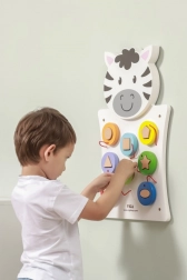 Descoperiți farmecul tablei murale din lemn Zebra de la VIGA, care dezvoltă nu doar gândirea creativă și îndemânarea, ci și capacitatea de a recunoaște formele și culorile. Acest joc este potrivit pentru copiii mici, care își dezvoltă abilitățile senzoriale prin joacă.