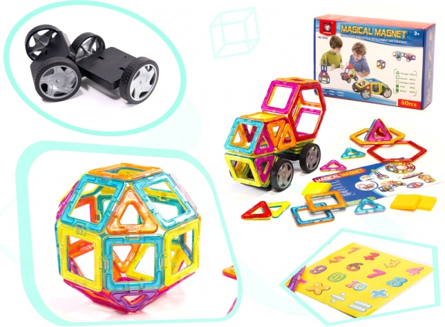 Seturi magnetice Magical Magnet cu 40 de piese pentru distracție creativă și dezvoltarea abilităților copiilor.