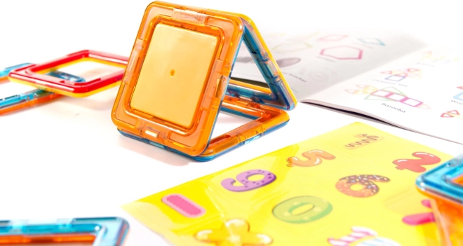 Un singur set, multe posibilități – piesele magnetice de diverse forme vă permit să creați forme 3D sau plate datorită magneților puternici.