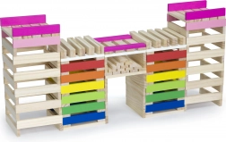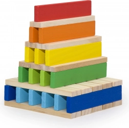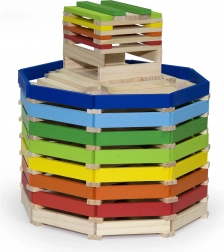 Blocurile sunt lăcuite cu vopsele netoxice în culori vii, pentru a asigura un joc sigur.