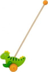 Jucăria Dinozaur de Împins din Lemn este o jucărie clasică destinată copiilor care încep să se miște. Acest accesoriu robust este echipat cu roți cu accesorii antiderapante care protejează podeaua și facilitează mișcarea. Dinozaurul verde își mișcă energic mâinile la împingere, captând atenția și motivând copilul să se miște mai mult.