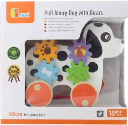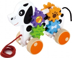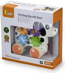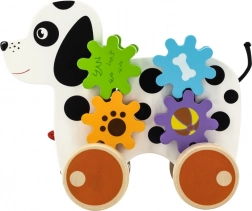 Acest câine de tras din lemn este conceput pentru a stimula nu doar activitatea fizică a copilului, ci și abilitățile sale cognitive. Când câinele se mișcă, roțile dințate se învârt, creând o experiență interactivă pentru micii exploratori.