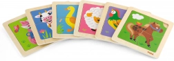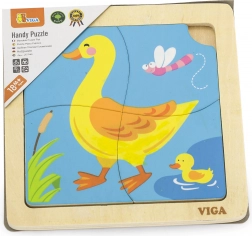 Puzzle-urile din lemn Viga conțin patru piese tematice care se montează ușor pe o placă cu imagine. Fiecare piesă este fabricată din lemn de calitate și pictată cu culori sigure, netoxice, care asigură siguranța copiilor și a mediului.