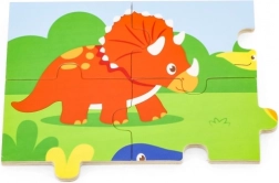 Puzzle-ul colorat din lemn VIGA cu motiv de dinozauri este o alegere excelentă pentru primele asamblări. Copiii își exersează într-un mod distractiv spiritul de observație, concentrarea și imaginația spațială, în timp ce piesele robuste din lemn se potrivesc plăcut în mâinile mici.