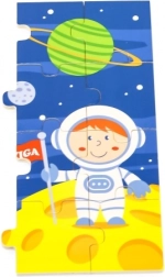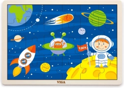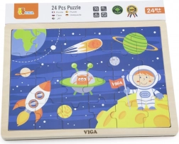Puzzle-ul din lemn VIGA cu temă spațială aduce bucuria descoperirii copiilor încă de la vârste fragede. Ilustrațiile colorate cu rachetă, astronaut și planete sprijină în mod natural recunoașterea formelor și culorilor și dezvoltarea coordonării mână–ochi. Puzzle-ul asamblat măsoară aproximativ 27,5 × 20 cm, potrivindu-se perfect pe masă sau în colțul de joacă.
