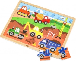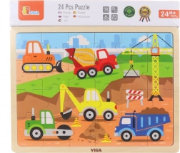 Puzzle-ul din lemn cu tematică de construcții atrage prin culorile vii și execuția robustă, rezistentă la joaca de zi cu zi. Cu 24 de piese, este o alegere excelentă pentru primele „asamblări mai mari” și susține concentrarea și percepția vizuală.