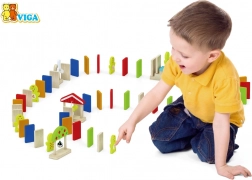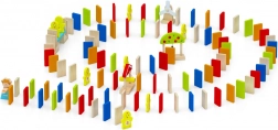 Jocul dezvoltă abilități esențiale: antrenează coordonarea mână–ochi, susține coordonarea, precizia mișcărilor și cooperarea între copii. După asamblare, este suficient să împingeți prima piesă și să vă bucurați de efectul domino perfect. Găleata practică cu mâner facilitează depozitarea și transportul.