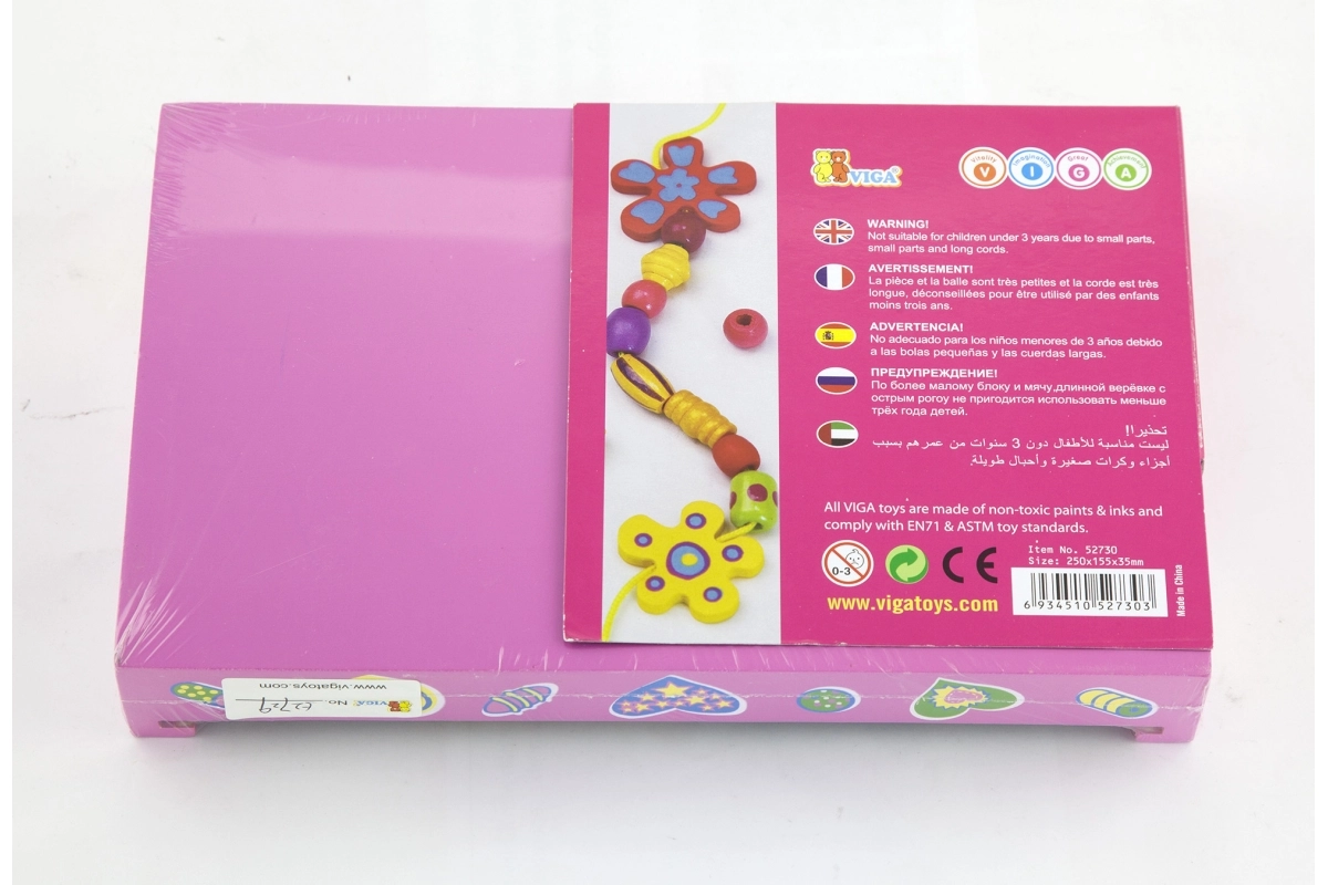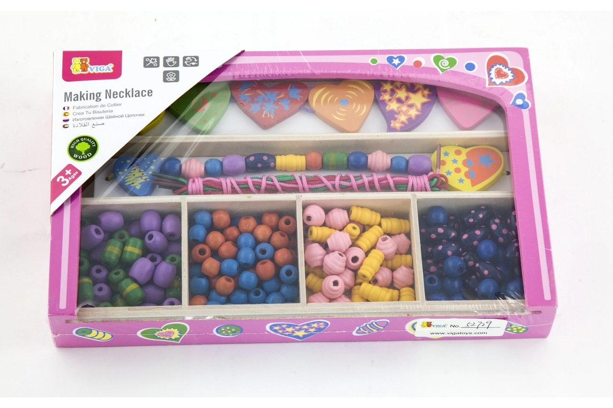 Include mărgele din lemn colorate și șnururi, astfel încât copiii pot începe să creeze brățări și coliere imediat după deschidere.