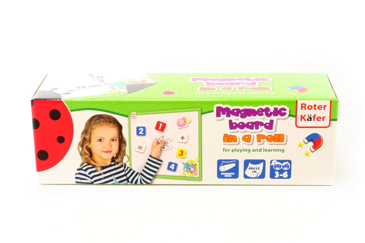 Tabla se mută ușor sau se rulează și se depozitează. Este ideală pentru învățarea acasă, camera copilului și călătorii. Dimensiunea tablei aprox. 48 × 32 cm, ambalaj compact aprox. 33 × 10 cm. Magneții nu sunt incluși.