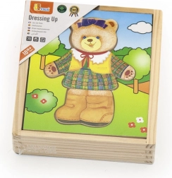 Căutați o jucărie creativă și educativă pentru cei mici? Puzzle-ul din lemn Viga „Îmbracă ursulețul – fetiță” aduce distracția asamblării a șase combinații diferite de expresii și ținute. Copiii își exersează într-un mod ludic abilitățile motorii, coordonarea mână–ochi și înțelegerea emoțiilor.