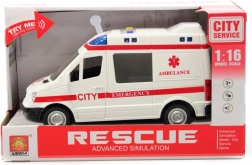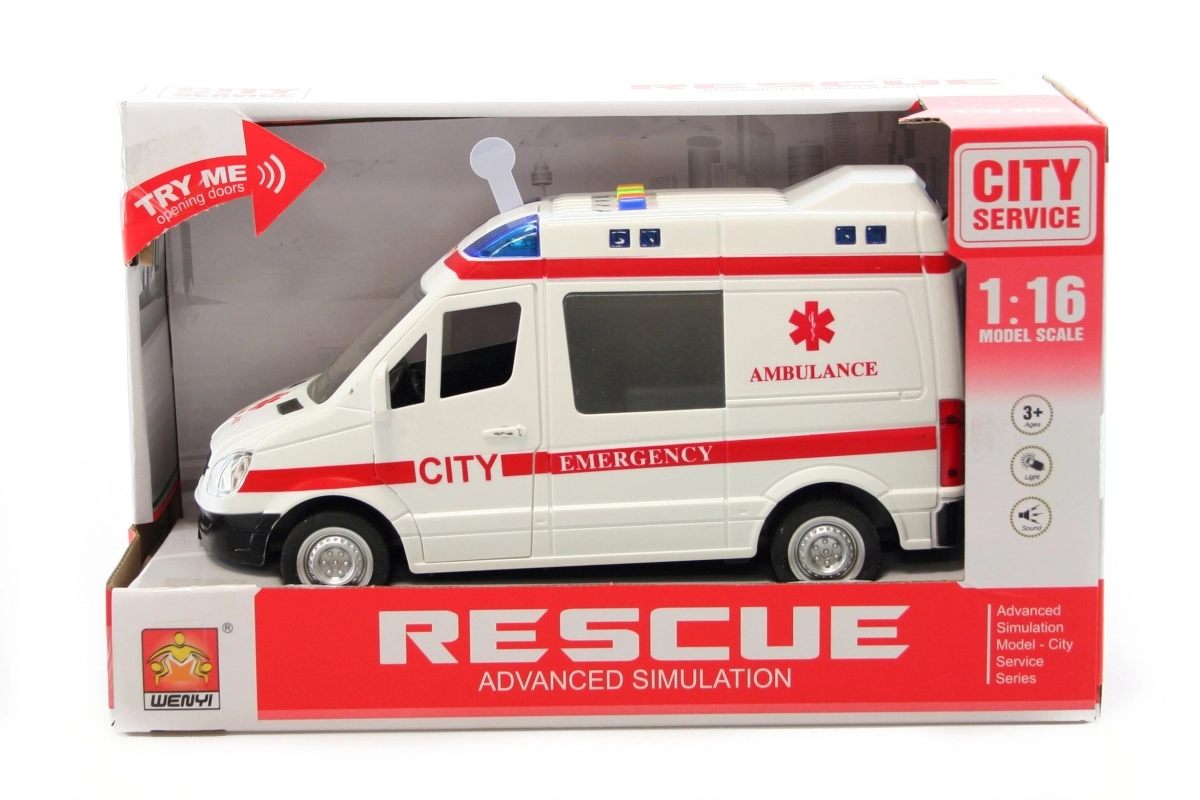 Această ambulanță realizată cu atenție la detalii oferă copiilor multă distracție și spațiu pentru dezvoltarea imaginației. Datorită butoanelor de pe acoperiș, vehiculul activează efecte luminoase și sunete realiste, care intensifică fiecare intervenție de salvare. Ușile care se deschid susțin jocul interactiv și accesul ușor la cabină.