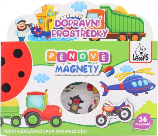 Acest set creativ de figurine magnetice din spumă le oferă copiilor o modalitate jucăușă de a descoperi lumea transporturilor. Motivele colorate cu mașini, trenuri, bărci și alte utilaje îi conduc în mod natural spre învățare și extinderea vocabularului. Magneții se prind cu ușurință pe frigider, pe tablă magnetică și pe alte suprafețe metalice.