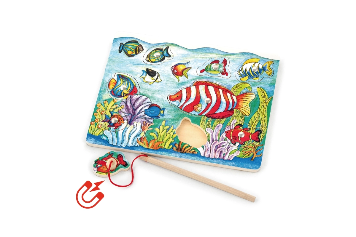 Acest joc de pescuit din lemn aduce copiilor bucuria de a prinde peștișori colorati și, în același timp, le dezvoltă abilitățile. Piesele se prind ușor de undița magnetică, ceea ce crește reușita și motivația copiilor. Ideal pentru joaca acasă sau ca cadou.