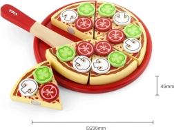 Setul include o pizza cu diametrul de cca 23 cm, tavă de servire și spatulă/cuțitaș pentru tăiere realistă. Datorită toppingurilor detașabile, copiii își exersează prinderea și imaginația, în timp ce părinții apreciază întreținerea ușoară și durabilitatea lemnului.