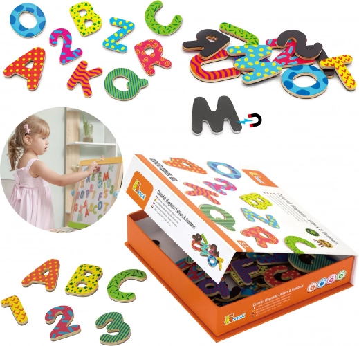 Setul educațional din lemn VIGA combină culori jucăușe și un design inteligent pentru a susține curiozitatea naturală a copiilor. Literele magnetice A–Z, cifrele 0–9 și simbolurile matematice permit crearea primelor cuvinte, propoziții și exerciții simple. Ideal pentru învățare acasă, grădiniță și clasa I.