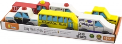 Setul oferă diverse tipuri de vehicule care ajută copiii să-și dezvolte creativitatea și înțelegerea serviciilor urbane.