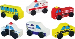 Setul de mașinuțe din lemn este un plus ideal pentru camera copilului. Conține autobuz școlar, mașină de poliție, mașină de înghețată, taxi, mașină de pompieri și ambulanță. Fiecare mașinuță oferă elemente specifice care susțin educația și dezvoltarea abilităților motorii.