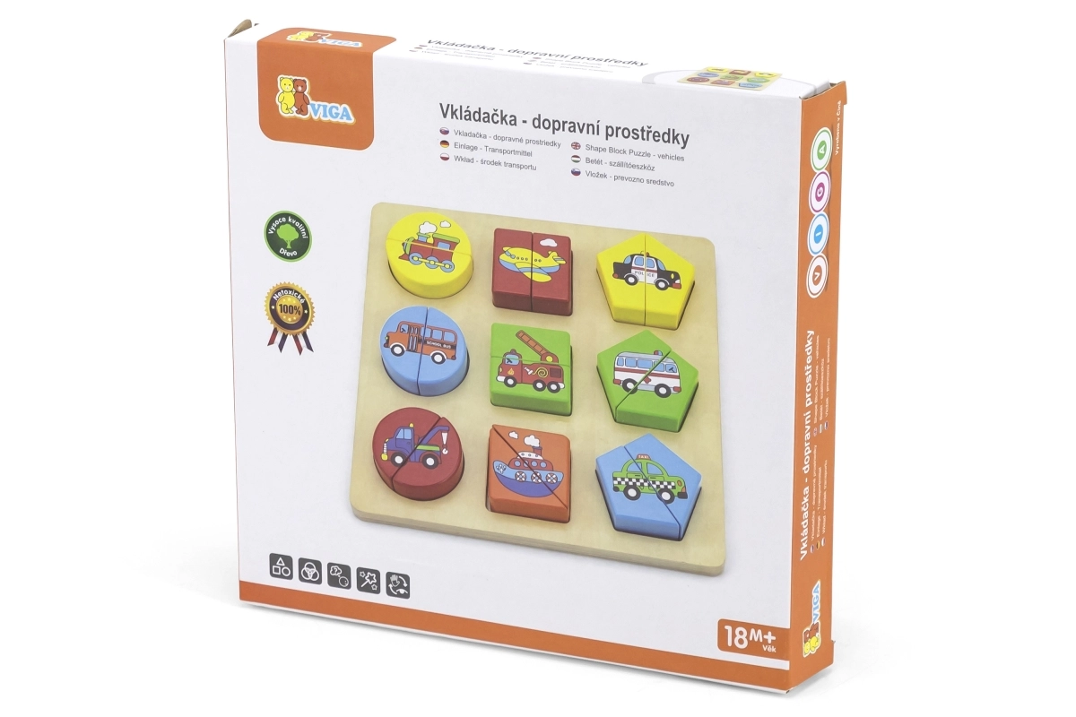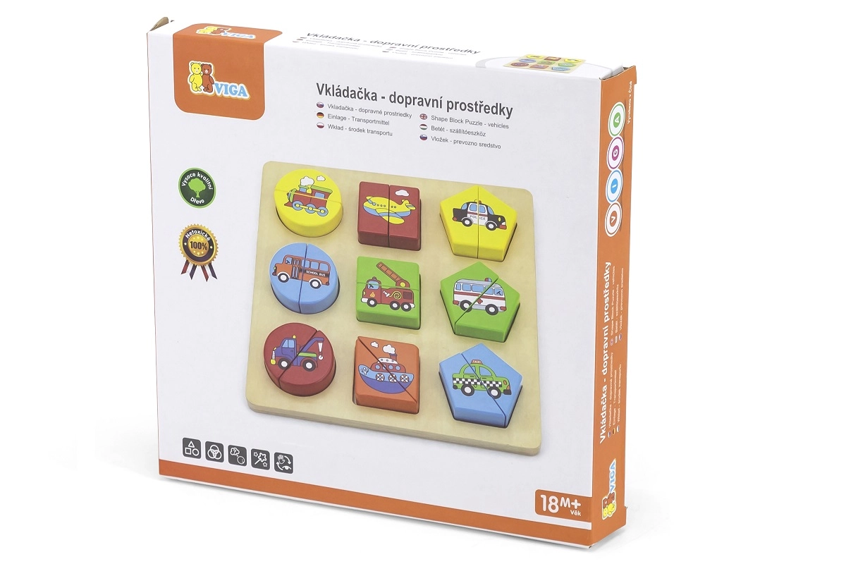 Puzzle din lemn cu piese de inserare - transport, în cutie în limba cehă