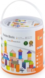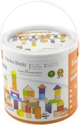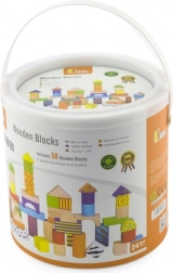 Acest set versatil de cărămizi din lemn oferă copiilor posibilități nelimitate de a construi turnuri, poduri și căsuțe. Piesele sunt plăcute la atingere, au margini netede și sunt colorate cu lacuri pentru o joacă atractivă și sigură. Găletușa cu mâner face depozitarea și transportul mai ușoare.