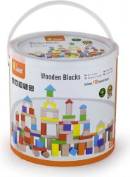 Descoperiți distracția atemporală cu cuburile din lemn, care le permit copiilor să construiască turnuri, poduri și propriul lor orășel. Setul conține 100 de piese în culori și forme variate, cu dimensiuni între 2,5 și 7,5 cm. Găletușa practică cu mâner facilitează depozitarea și transportul, astfel încât cuburile să fie mereu la îndemână.