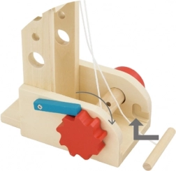 Copiii pot ridica și coborî încărcătura prin simpla rotire a rotiței de înfășurare. Mecanismul susține coordonarea mână–ochi și oferă o funcționare lină și sigură.