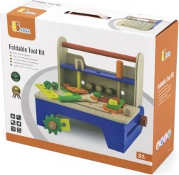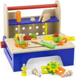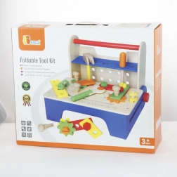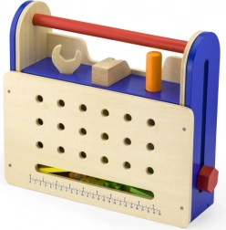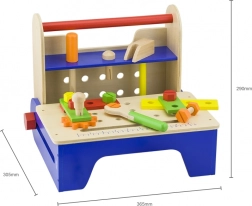Descoperă lumea creativă a construcțiilor cu acest set de unelte din lemn de calitate pentru copii de la 3 ani. În lada practică de transport, care se transformă ușor într-un banc de lucru, găsești tot ce este necesar pentru micii meșteri – șurubelniță, ciocan, cheie, șuruburi, piulițe și plăcuțe. Jocul dezvoltă motricitatea fină, gândirea logică și creativitatea, oferind ore de distracție fără ecrane.