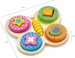 Puzzle-ul din lemn Fluture de la VIGA este o jucărie educativă ideală pentru cei mici. Piesele colorate se prind ușor, iar datorită marginilor frezate cu precizie se potrivesc ferm în suport, astfel încât copiii le pot asambla confortabil fără a fi distrași.