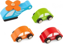 În pachet se află 3 mașinuțe din lemn și un elicopter, astfel încât poți începe joaca imediat după despachetare. Formele rotunjite sigure și materialele rezistente sunt ideale pentru utilizare zilnică.