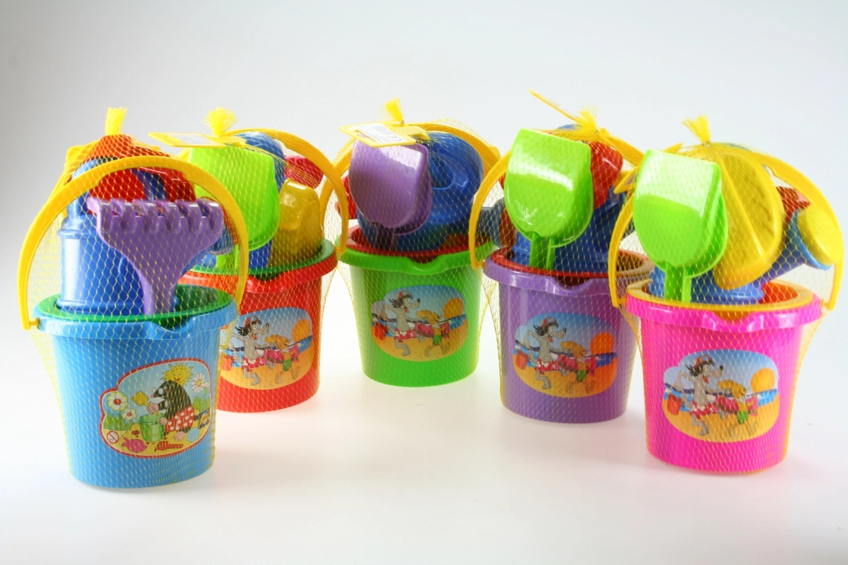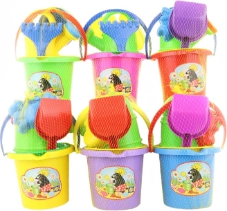 Acest set colorat din plastic pentru nisip este o alegere excelentă pentru copiii care iubesc să creeze și să construiască. Imaginația nu are limite – de la forme simple până la primul castel de nisip, totul este posibil datorită echipării complete într-un singur pachet. Găleata cu imagine adaugă și mai multă bucurie jocului și îi motivează pe copii la joacă creativă în aer liber.
