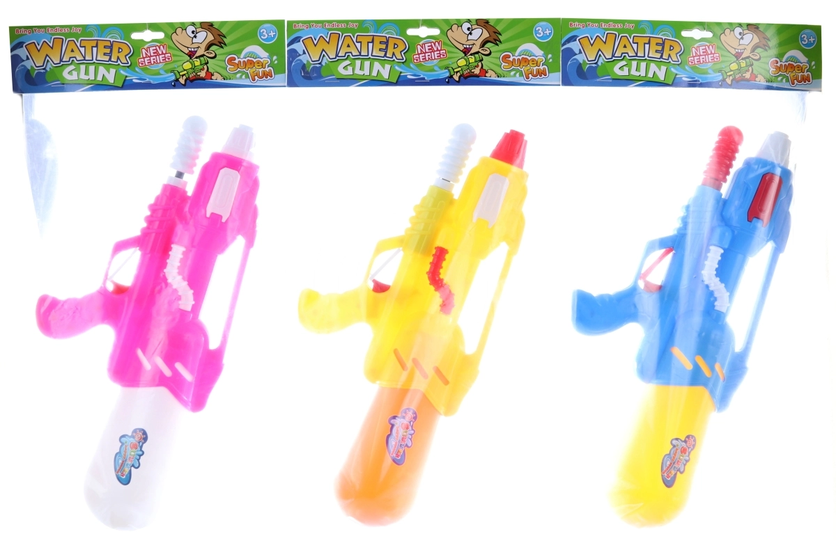 Bucurați-vă de distracție nesfârșită de vară cu acest pistol cu apă din plastic cu lungimea de 40 cm. Datorită prinderii confortabile și construcției ușoare, este ideal pentru copii de la 3 ani și perfect pentru grădină, lângă apă sau în vacanță.