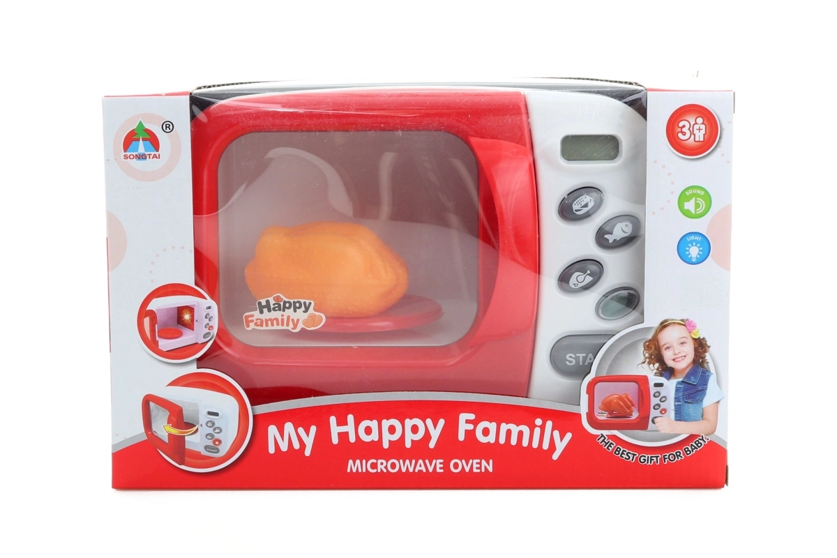Cuptorul cu microunde realist pentru copii aduce multă distracție în jocurile de bucătărie. Oferă efecte luminoase, farfurie interioară rotativă și efecte sonore. Dimensiunile compacte sunt ideale pentru camera copilului, iar execuția sigură din plastic este potrivită pentru copii de la 3 ani.
