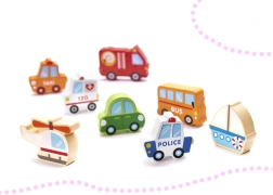 Sprijină dezvoltarea motricității fine, a gândirii logice și recunoașterea culorilor. Prin includerea animalelor precum elefant, girafă, zebră, leu și crocodil, distracția este extinsă și la elemente de zoo. Varietatea mijloacelor de transport precum poliție, pompieri, ambulanță, taxi, autobuz, mașină personală, bicicletă și barcă garantează că copilul nu se va plictisi niciodată.