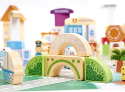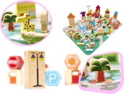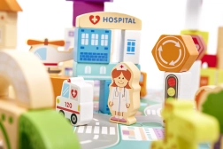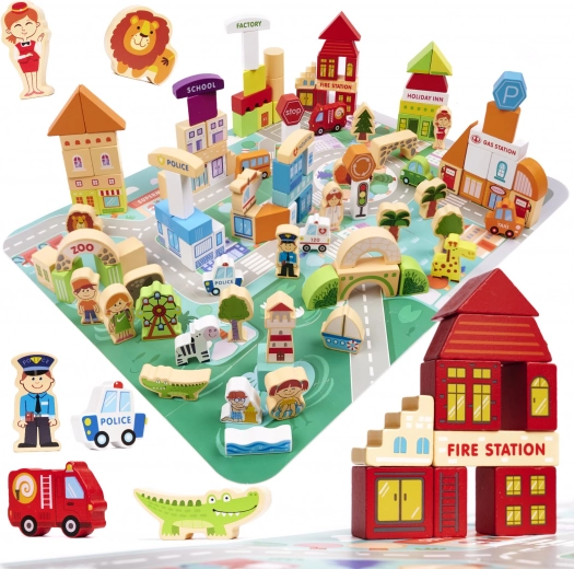 Învie creativitatea copilului tău cu acest set de construcție din lemn extrem de colorat, ce conține 120 de piese, ideal pentru a crea un mediu urban. Setul complet include clădiri precum spital, fabrică, hotel, stație de benzină și stație de pompieri, permițând copiilor să descopere și să-și dezvolte imaginația.