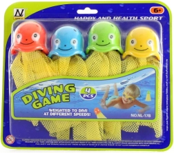 Setul de caracatițe pentru scufundare este un accesoriu ideal pentru copiii care învață să se scufunde și să își crească siguranța în apă. Datorită numerelor diferite de pe fiecare caracatiță, se pot crea cu ușurință jocuri cu punctaj, concursuri și exerciții simple de coordonare și de menținere a respirației. Culorile vii contribuie la vizibilitatea bună sub apă.