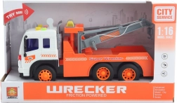Mașină de tractare din plastic pentru micii pasionați de mașini, care emite efecte de lumini și sunete la apăsarea butoanelor. Potrivită pentru copiii de la 3 ani.