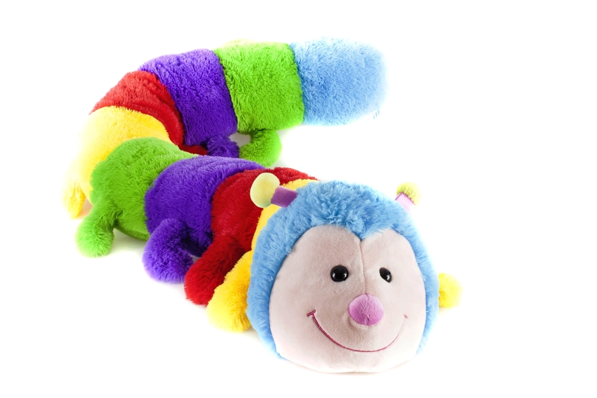 Această omidă de pluș colorată va cuceri inimile celor mici și ale copiilor mai mari. Datorită lungimii de aproximativ 155 cm, este potrivită ca partener de alintat în pătuț, însoțitor moale în călătorii și element jucăuș în colțișorul de joacă. Materialul fin, catifelat la atingere, asigură confort maxim și un contact sigur pentru bebeluși de la 0 ani.