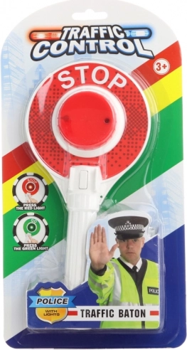 Plăcuță de poliție cu lumină. Pe o parte luminează roșu, iar pe cealaltă verde. Alimentare cu 2x baterii AA (incluse în pachet). Dimensiunea plăcuței aprox. 23 cm. Dimensiunile ambalajului aprox. 30 x 16 x 3 cm. Vârsta 3+