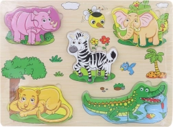 Descoperă amuzantul puzzle din lemn cu tematică safari, care dezvoltă motricitatea fină, recunoașterea formelor și a animalelor și susține gândirea logică la copiii de la 3 ani. Realizarea de calitate din lemn și ilustrațiile colorate îi invită la joacă iar și iar.