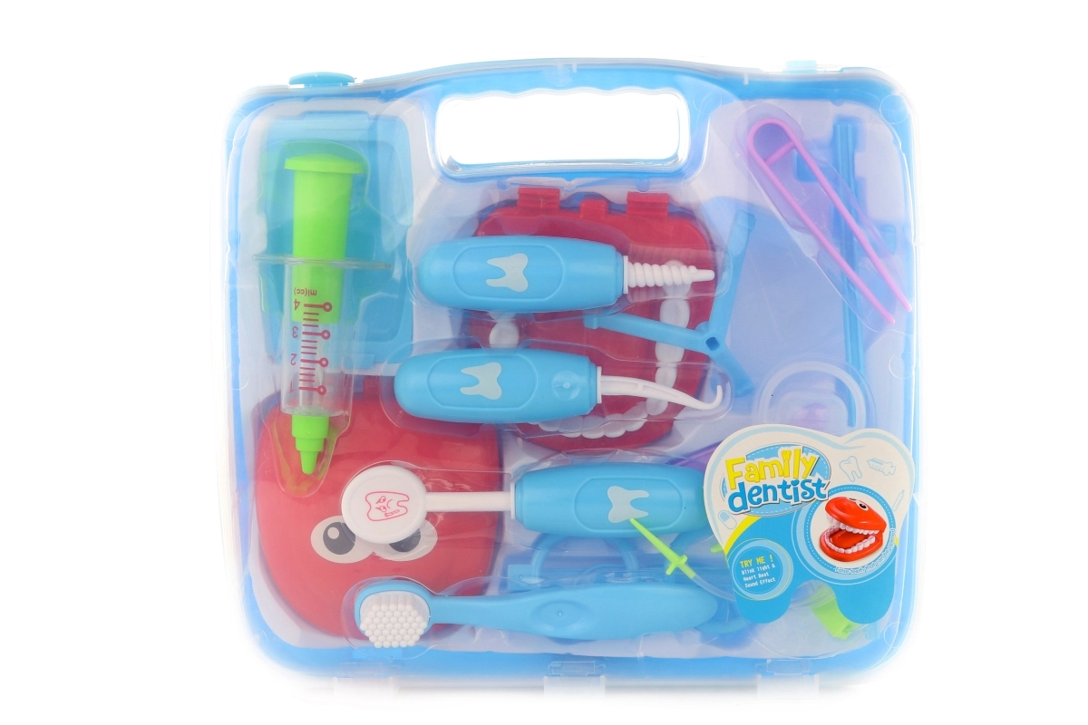 Acest set stomatologic în valiză le oferă copiilor tot ce au nevoie pentru a se juca de-a cabinetul dentar – de la modelul de dinți care se deschide până la instrumente precum seringă, oglindă sau „bormașină”. Datorită accesoriilor variate, copiii își exersează motricitatea fină, comunicarea și răbdarea și, într-un mod distractiv, își însușesc obiceiuri corecte de îngrijire a danturii.